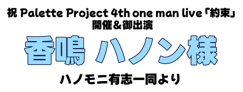 Palette Project 4th one man live「約束」開催おめでとうございます!ハノンちゃんが今年もステージの上で輝く姿を楽しみにしてます!ライブ全力で楽しむぞーーーーーーーー!!!